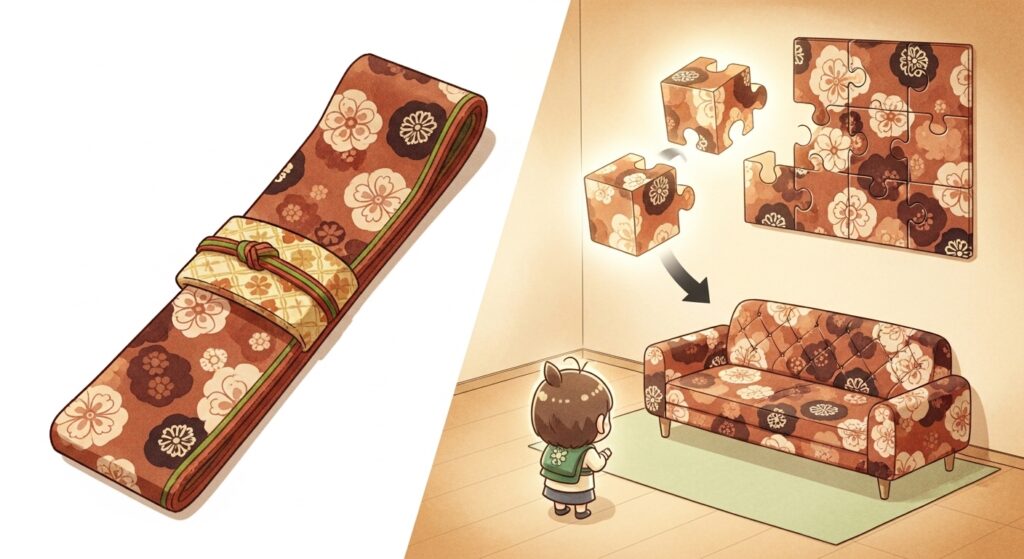 伝統的な和装の世界では求められなかった、光の当たり方による見え方の変化、壁紙やソファの張地としての厳しい耐久性基準、そして西洋のラグジュアリー空間に適合する全く新しいデザイン性。これらは、外部システム(海外の建築基準や美意識)からの、極めて高度でシビアなリクエストでした。