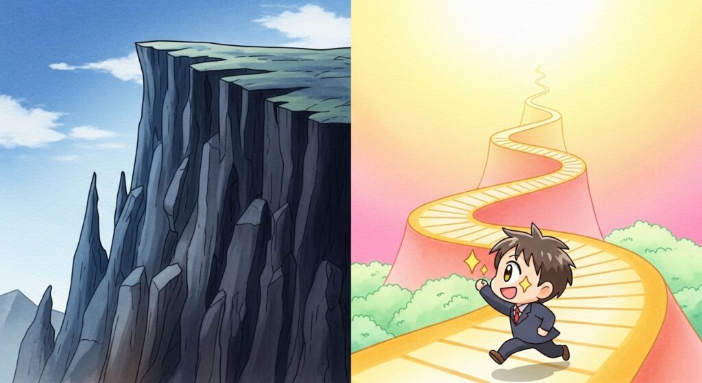 あまりにも段差が小さいため、登っている(学習している)感覚すらなく、気づけば高い場所(高度な数学)に到達している。